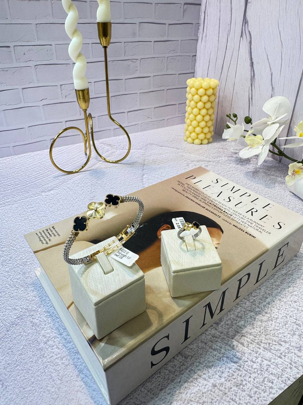 | * طراحی نمادین: مدل ونکلیف (Van Cleef) با طرح مشهور شبدر (آلهامبرا). | * مدل: نیمست ونکلیف (دستبند و انگشتر) |